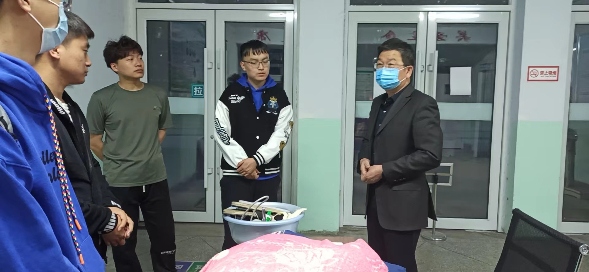 披星戴月送溫暖,入微服務暖人心。4月12日晚,夜風寒涼,暮色深沉,校園里卻依然燈火通明。在結束了一天繁忙工作后,弓永華、姚麗英帶領全體校領導深入農學與生命科學學院、音樂學院、校醫院、食堂等地,看望慰問駐校教職工、醫護人員和餐飲服務人員,實地查看大家的辦公、住宿環境,了解生活需求,聆聽工作感悟,感謝大家的辛苦付出,表示會以大家的需求為導向,隨時解決困難。