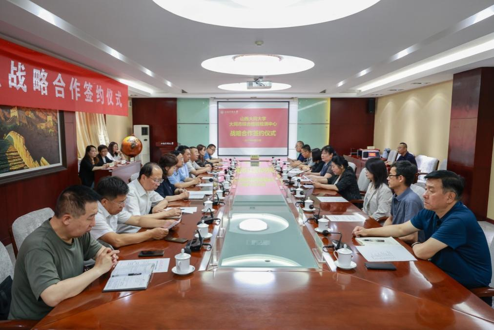 ? 6月22日,我校與大同市綜合檢驗檢測中心戰略合作協議簽署儀式在行知樓14層會議室隆重舉行。大同市綜合檢驗檢測中心黨組書記、主任管立江一行,校黨委常委、副校長石鳳珍,學校職能部門領導及部分學院書記、院長參加簽約儀式。