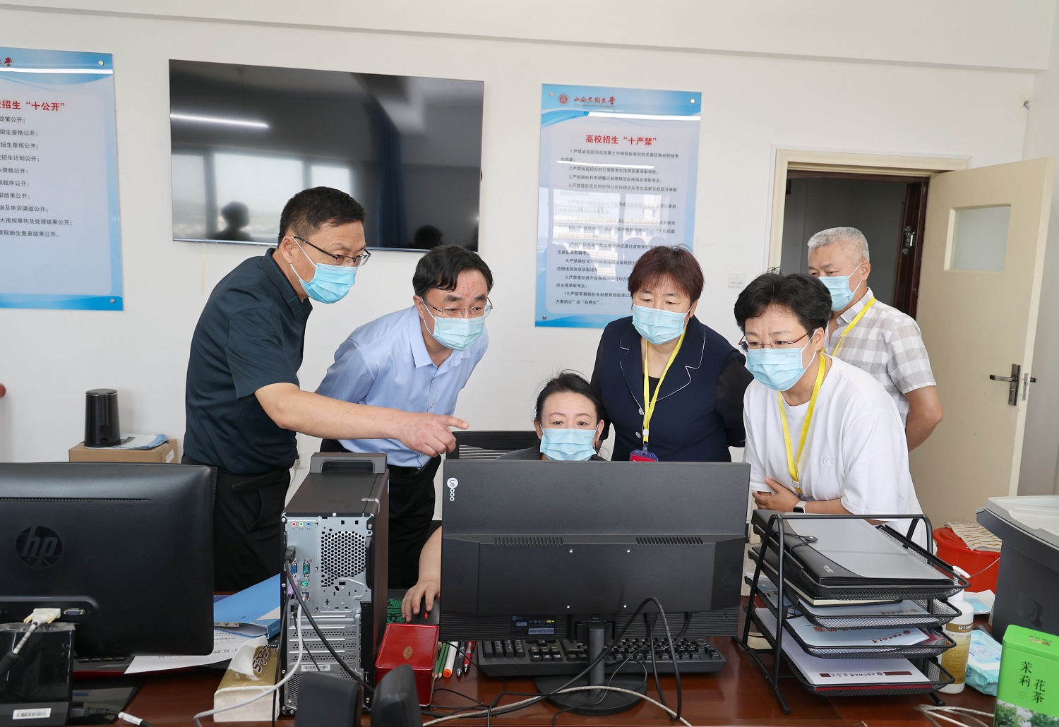???? 7月24日,校黨委書記趙水民,校黨委副書記、校長姚麗英深入教務部本科招生工作現(xiàn)場,調研指導我校2022年本科招生錄取工作,并看望慰問一線招生錄取工作人員。辦公室、教務部等部門負責人陪同調研。