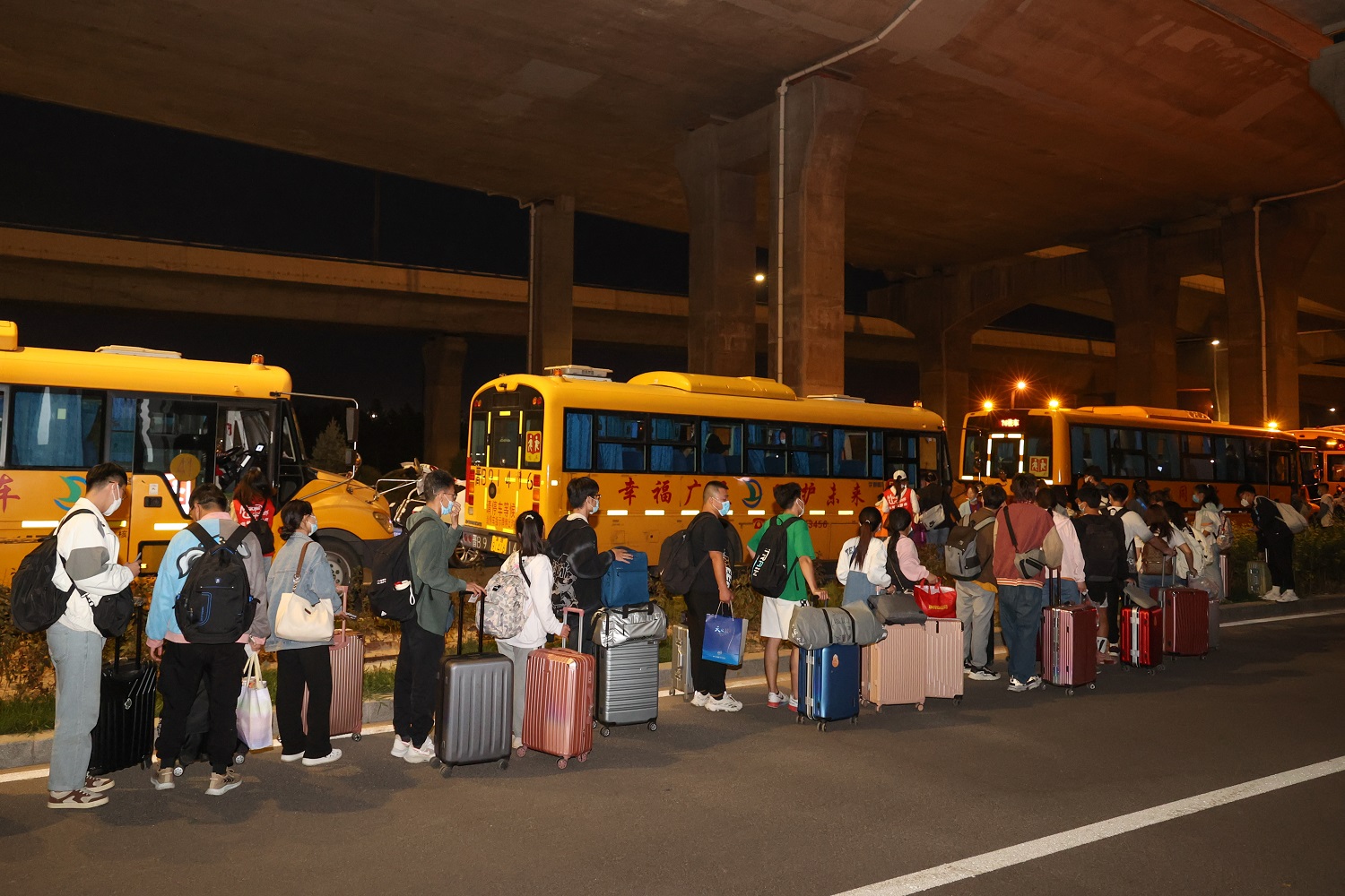 此次與新生一起報到的,還有秋季學期開學因疫情未能按時返校的20000余名其它年級學生。為了確保同學們在疫情下安全到“家”、如期開學,學校多次召開專題會議,就新、老學生的開學報到和返校工作進行研究,審慎研判疫情形勢,細化工作分工,層層壓實責任,科學制定了以公寓、校區為單位分批錯峰報到的實施方案。校疫情防控辦從開學驗收、交通疏導、交通運輸、應急處置等方面主動對接屬地贏得支持配合,各學院對所有學生進行了嚴格的來校資格審查。三天來,學校科學統籌,在云岡機場、大同站、大同南站、新南公路客運站、汽車客運東站設立了5個接站點,租用50輛大巴,分批次、分校區、分樓宇往返接送學生至御東校區南校區、中校區及新平旺校區的30幢學生公寓樓下,并一站式完成兩碼(健康碼、行程碼)查驗、一卡一書(返校審批卡、錄取通知書)核驗、兩檢(48小時核酸、落地核酸)、報到注冊、公寓入住等相關流程。此外,學校還針對自駕前來的學生安排了專有入校通道,調度17輛擺渡車,以樓宇為單位運送學生及其行李物品。整個新生開學報到與老生接返工作一絲不茍、環環相扣,圓滿實現了27000余名學生從落地到入校再到進入宿舍的全過程網格化閉環管理。