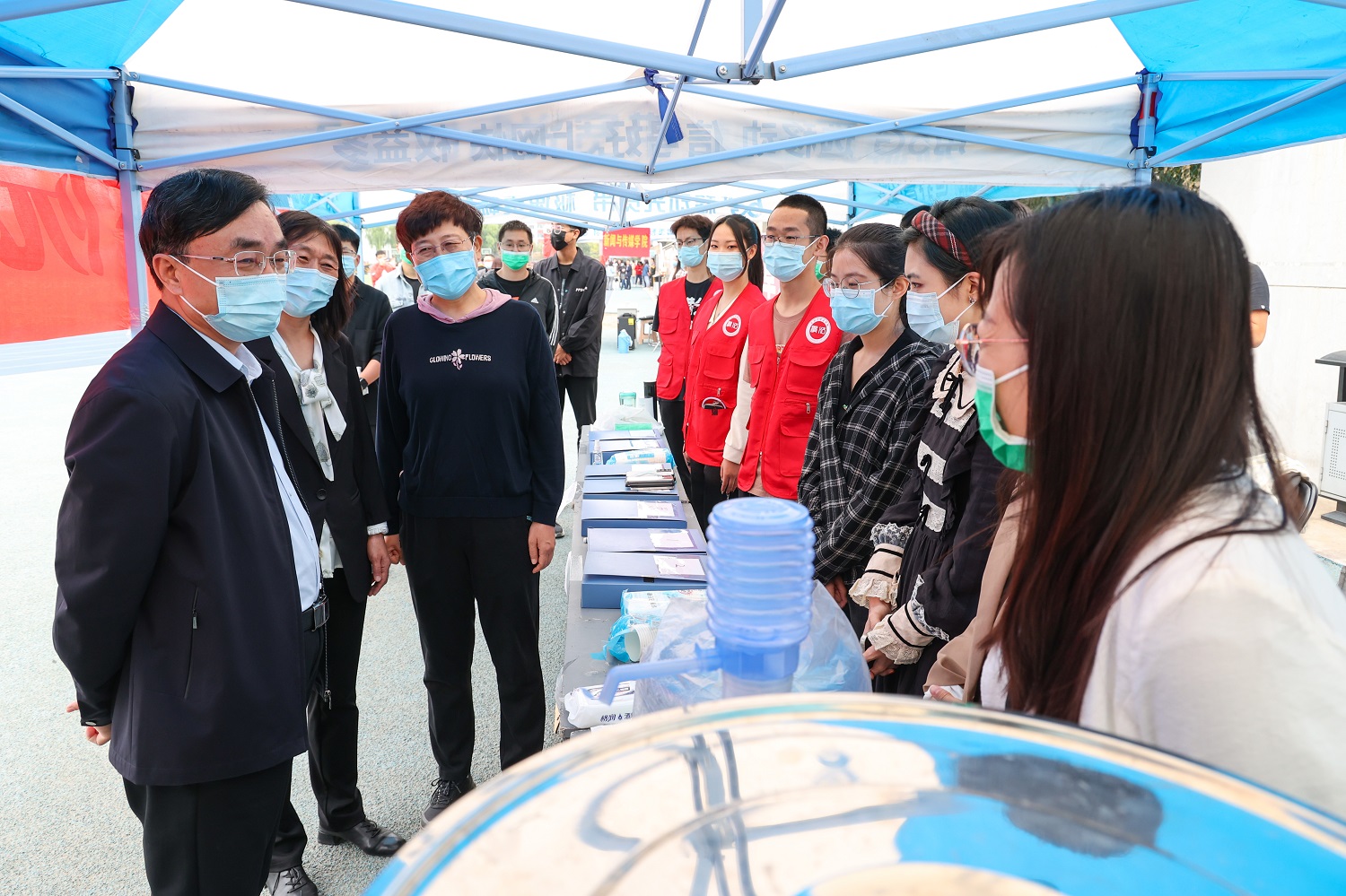 每到一處,趙水民都和志愿者們親切攀談,代表學校向大家表示最衷心的感謝和贊賞:“幫助別人就是在幫助自己。關愛的種子種在每個人的心間,日后必將生根、發芽、結果,愛的果實必將惠及千千萬萬的后來者。”