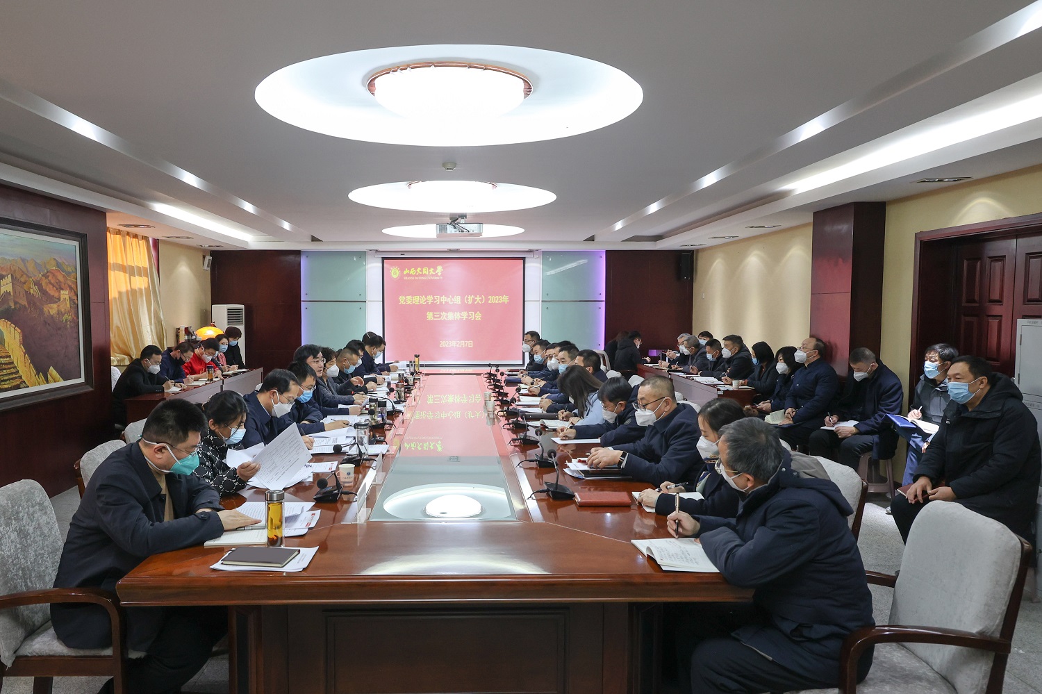 2月7日,學校舉行校黨委理論學習中心組(擴大)學習暨2023年領導班子務虛會,專題傳達學習省委書記藍佛安在省管主要領導干部專題研討班上的講話精神,圍繞貫徹落實工作以及2023年學校工作高質量開展,進行深入研討交流。全體校領導出席會議,校黨委理論學習中心組成員、各部門單位負責人、各學院黨政負責人參加會議。會議由校黨委書記趙水民主持。