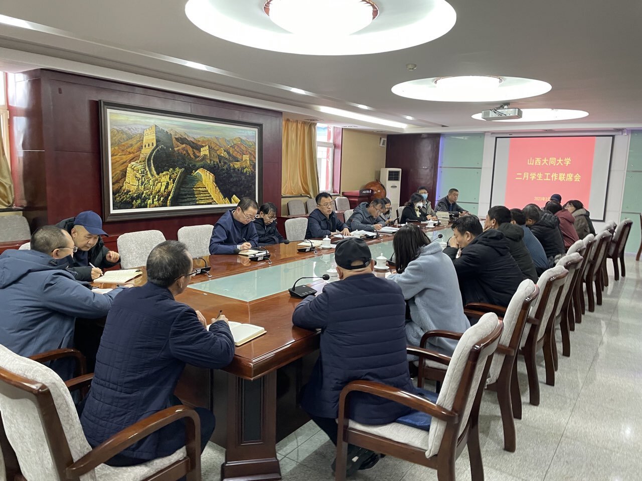 寇福明對學工部和各學院在疫情期間的學生工作表示肯定和感謝,并對今年的學生工作進行了部署:第一,要進一步堅持立德樹人,加強大學生思想政治教育。學工部、團委要按照學校黨委有關安排部署,創新學習方式方法,開展形式多樣的學校宣傳活動,把理論學習與課程思政相結合,抓實理論學習,進一步深化習近平新時代中國特色社會主義思想和黨的二十大精神學習。第二,要加強團學隊伍建設,完善輔導員考核機制。嚴格執行輔導員任期制,加強對團學干部的培養培訓,舉辦輔導員職業能力大賽,促進我校輔導員的專業化職業化發展,努力打造一支高素質團學工作隊伍。第三,要進一步創新學生管理水平,推動學生工作科學發展。新時期,學生管理工作面臨著新特點新問題,要優化學生公寓網格管理,加快推進學生管理系統信息化建設步伐,積極推進“一站式”學生社區綜合管理模式建設工作,同時要發揮學生會等群團組織在社區管理、基層黨建及網格化服務管理中的積極作用。加強民族學生和特殊群體學生的教育管理。第四,要進一步做好心理健康教育,促進學生身心健康和全面發展。加強專職心理健康教師隊伍的保障和配備,積極組織開展師資隊伍培訓;把學生心理健康監測、排查、教育、干預等各項工作做實做細。第五,要豐富校園文化活動,凸顯同大特質校園文化建設。打造校園文化藝術節精品活動,做好“第二課堂”方案的頂層設計,全面實施“第二課堂”,做好大學生創新創業訓練計劃項目和各類創新創業大賽的組織工作,提升學生綜合人文素養和綜合素質。第六,要狠抓推進落實,多舉措創新畢業生就業創業新局面。要認真組織好專場宣講會及各級各類招聘會,積極搭建就業平臺、拓展就業渠道,鼓勵支持大學生在校創新創業,為大學生在校創新創業提供“保姆式服務”。同時要加強大學生就業指導和大學生職業生涯規劃課程的師資培訓,提升就業創業指導服務力度。第七,要進一步強化責任擔當,做好其他學生管理常規性工作。
