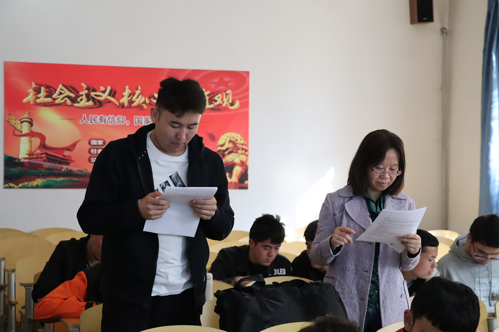 為深入學習貫徹習近平新時代中國特色社會主義思想和黨的二十大精神,扎實推進民族團結教育,鑄牢中華民族共同體意識,切實提高我校少數民族學生使用國家通用語言文字的能力,教務部語言文字辦公室組織5名普通話水平測試員,4月1日下午在新平旺校區4號樓105號教室開展了少數民族學生普通話專項培訓。培訓課由專職輔導員迪麗拜爾·阿力甫主持。