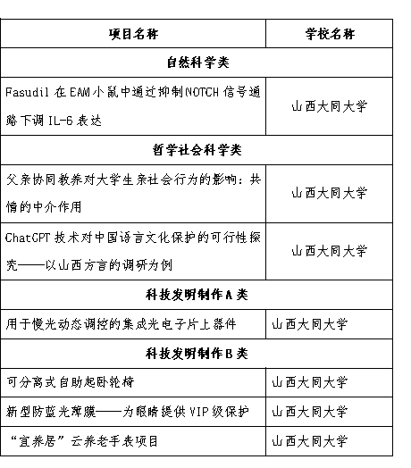 第十八屆“挑戰(zhàn)杯”山西省大學(xué)生課外學(xué)術(shù)科技作品競賽擬授三等獎作品名單