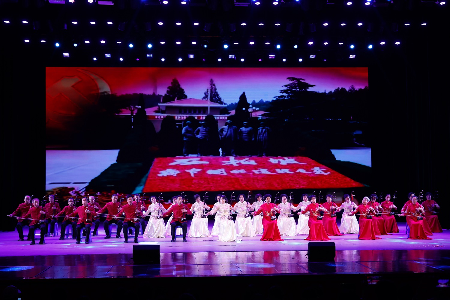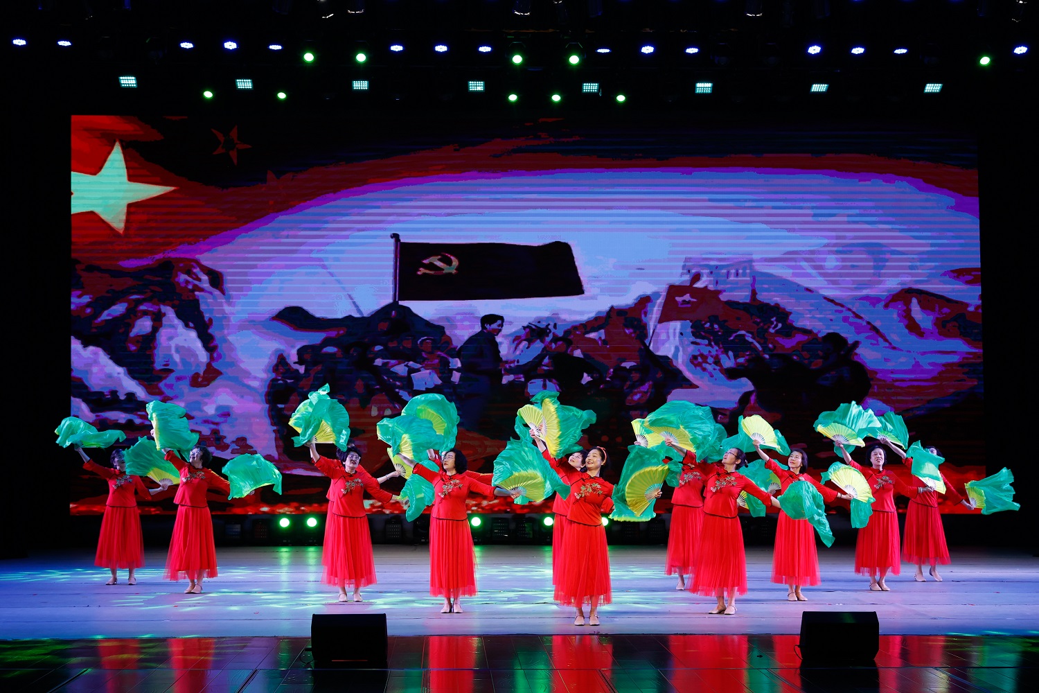 在大合唱《復興的力量》《我們的中國夢》的歌聲中,由“紅色耀東方”“禮贊好山河”“共邁新征程”三個篇章組成的主題音樂黨課拉開序幕。由我校離退休教師代表隊獻上的舞蹈《母親是中華》,禮贊“萬里江山披錦繡,紅星照我去戰斗”的葫蘆絲齊奏《映山紅》,歌頌“江山就是人民,人民就是江山”的舞蹈《江山》,致敬“初心不改、風華正茂的中國共產黨”的晉劇聯唱《頌歌獻給黨》,展示“塞外古都,鳳凰之城”風采的音詩畫表演《美麗大同》,吟誦奮進新征程的配樂詩朗誦《光榮與夢想》,奏響“心中有信仰,腳下有力量”的二胡齊奏《信仰的力量》,傳遞勝利喜悅的口琴合奏《喜悅》,我校退休教師王鳳云傾情演唱的《人說山西好風光》……精彩紛呈的節目次第上演,串起一個個紅色故事,深情回顧中國共產黨的光輝歷程,傾心描繪新時代的壯美畫卷。