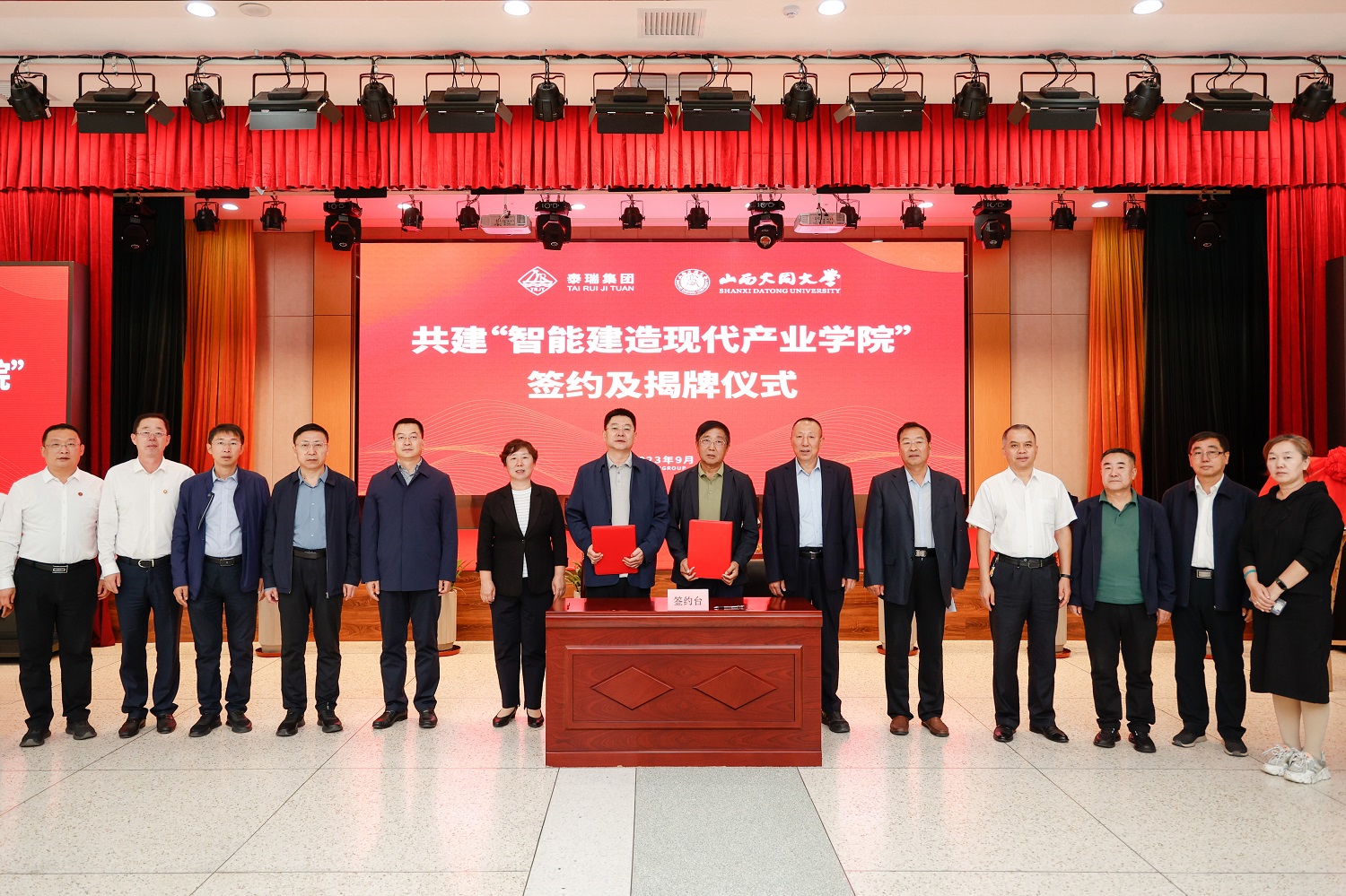 9月21日,我校與泰瑞集團在大同市工匠學(xué)院召開高質(zhì)量發(fā)展研討會,并舉行共建“智能建造現(xiàn)代產(chǎn)業(yè)學(xué)院”簽約、揭牌以及導(dǎo)師互聘儀式。校黨委副書記、校長姚麗英,校黨委常委、副校長史水鴻,校黨委常委、副校長馬軼明,泰瑞集團副總裁、瑞城產(chǎn)業(yè)園區(qū)董事長、大同市工匠學(xué)院院長張擴忠,泰瑞集團技術(shù)總監(jiān)楊玉棟,大同經(jīng)濟技術(shù)開發(fā)區(qū)組織與人力資源部部長滕雁出席會議。泰瑞集團黨委副書記、工會主席常曉彥主持會議。