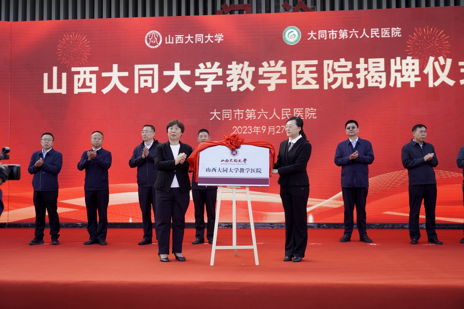 姚麗英、張海波為山西大同大學教學醫院揭牌;王學東、馬軼明為山西大同大學人才聯合培養基地揭牌;紀青、郝軍生為山西大同大學大學生實習實訓基地揭牌。曹德、紀青分別代表大同市第六人民醫院、大同市衛健委致辭,對揭牌儀式表示祝賀,就持續深化醫教研融合提出希望。