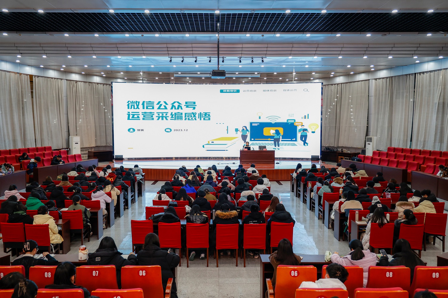 12月13日,山西大同大學(xué)校園新聞業(yè)務(wù)能力提升系列專題培訓(xùn)第五講在慎思樓報(bào)告廳舉辦,大同日?qǐng)?bào)社新媒體中心副主任賀英受邀為師生作《微信公眾號(hào)運(yùn)營采編感悟》專題講座。附屬中學(xué)校長(zhǎng)、黨委宣傳部副部長(zhǎng)王麗芹主持講座。