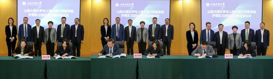2024年4月12日上午,我校與上海交通大學醫學院護理實習項目簽約儀式在文德樓一層會議室舉行。我校與上海交通大學醫學院在雙方簽署的《山西大同大學與上海交通大學醫學院戰略合作框架協議書》基礎上,本著“優勢互補、共謀發展、互惠互利、實現雙贏”的原則達成校外實習實訓基地合作意向,上海交通大學醫學院聯合愛心企業設立醫學教育發展基金資助護理專業學生赴滬實習。