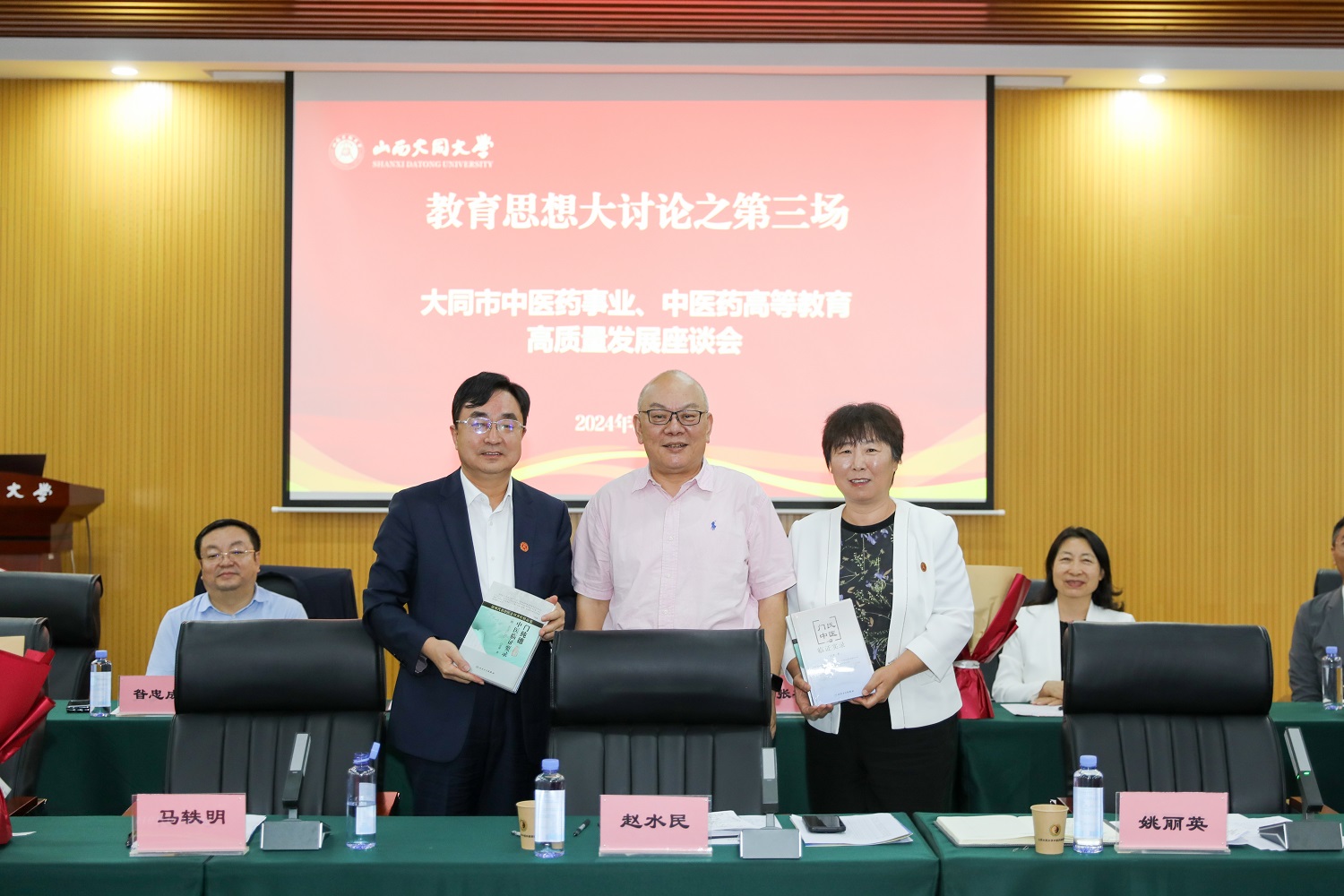 為扎實推進我校“強醫學”方案落地見效和中醫學專業認證工作有序開展,9月9日,我校舉辦教育思想大討論之“大同市中醫藥事業、中醫藥高等教育高質量發展”座談會。校黨委書記趙水民,校黨委副書記、校長姚麗英,校黨委常委、副校長馬軼明,大同市衛健委副主任張曉瓊出席會議。大同市中醫藥領域專家代表以及我校附屬醫院負責人70余人參加。馬軼明主持座談會。