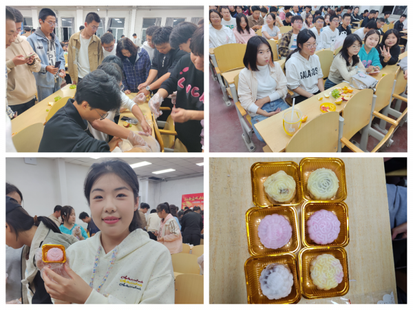 學(xué)院為師生們精心準(zhǔn)備了各式水果和制作月餅的食材,大家積極參與,相互協(xié)作,揉面團(tuán)、包餡料,壓模具、脫模包裝······新鮮出“爐”的精美月餅承載了大家中秋佳節(jié)對(duì)彼此的祝福。學(xué)院黨委書(shū)記張蕾親臨活動(dòng)現(xiàn)場(chǎng),與同學(xué)們一起做月餅,聊家常,師生們共同感受傳統(tǒng)文化的同時(shí),共話學(xué)院發(fā)展,齊心協(xié)力謀劃學(xué)院未來(lái)。