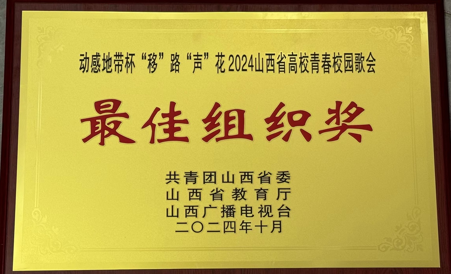 10月31日,由共青團(tuán)山西省委、山西省教育廳、山西廣播電視臺(tái)聯(lián)合主辦,F(xiàn)M94.0山西音樂(lè)廣播、FM101.5山西文藝廣播、黃河電視臺(tái)承辦的“動(dòng)感地帶杯‘移’路‘聲’花2024山西省高校青春校園歌會(huì)”在太原師范學(xué)院圓滿落幕。在這場(chǎng)省內(nèi)83所高校共同參與的音樂(lè)盛宴中,我校榮獲“最佳組織獎(jiǎng)”(共有7所高校獲獎(jiǎng)),化學(xué)與化工學(xué)院覃悅瑩同學(xué)獲得優(yōu)秀獎(jiǎng)。