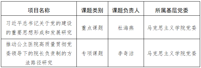 近日,山西省黨建研究會立項課題發布,我校2項課題被確定為2024年度“山西省黨建研究”專項課題,重點課題和專項課題獲得立項總數在全省高校中位列第一方陣。