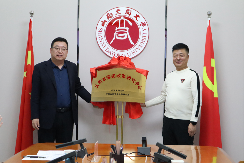12月12日,大同市深化改革研究中心在我校行知樓舉行揭牌儀式。校黨委常委、副校長史水鴻,中共大同市委政策研究室副主任常占庫出席。