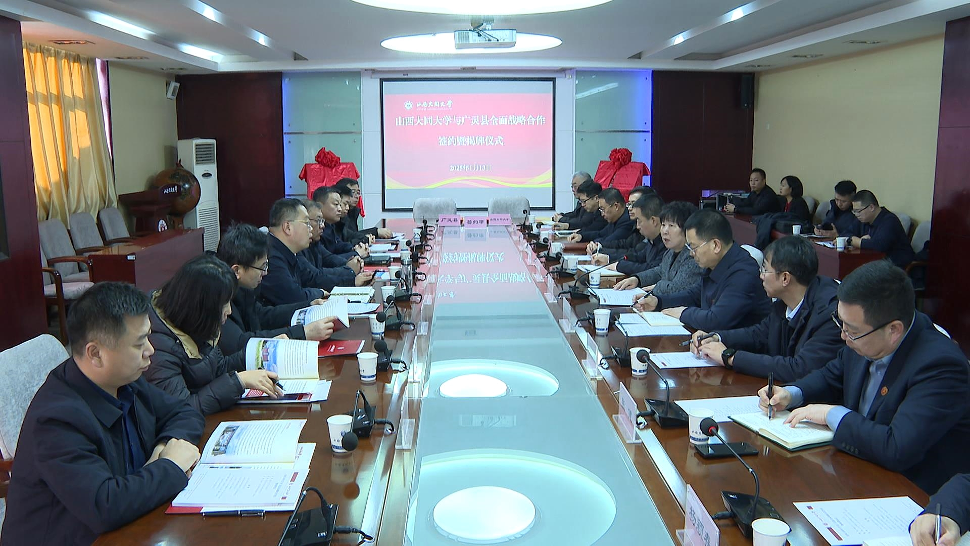 校縣合作再深化,優勢互補促發展。1月13日上午,山西大同大學與廣靈縣全面戰略合作簽約暨揭牌儀式在山西大同大學舉行。