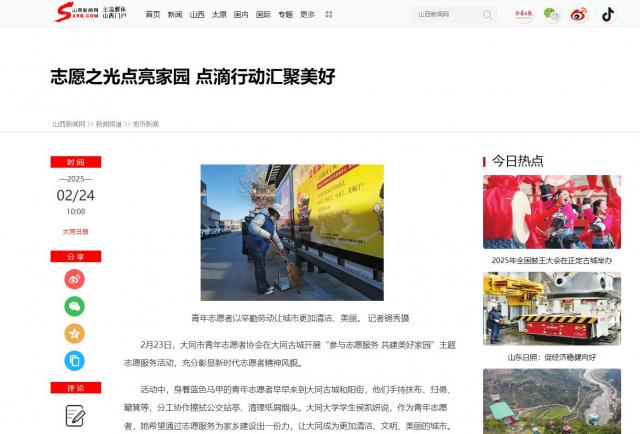 2月23日,大同市青年志愿者協(xié)會在大同古城開展“參與志愿服務(wù)共建美好家園”主題志愿服務(wù)活動,充分彰顯新時代志愿者精神風(fēng)貌。