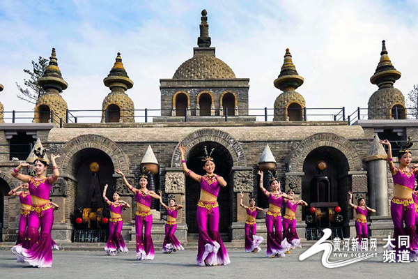 《云岡之舞》由《云岡束腰鼓舞》《云岡六臂神舞》《云岡金剛力士舞》《云岡蓮珠紋舞》《云岡鳳簫神舞》《云岡長袖飛天舞》組成。該作品以大同市云岡石窟雕像為創作藍本,以北魏歷史為敘事脈絡,借助舞臺表演與多媒體傳播的力量,讓石窟造像中原本靜態的舞蹈“活”了起來,以更為親民的方式向大眾展示云岡文化成果,使廣大觀眾能夠借此深入探尋中華美學文化,全面了解民族融合歷史進程。