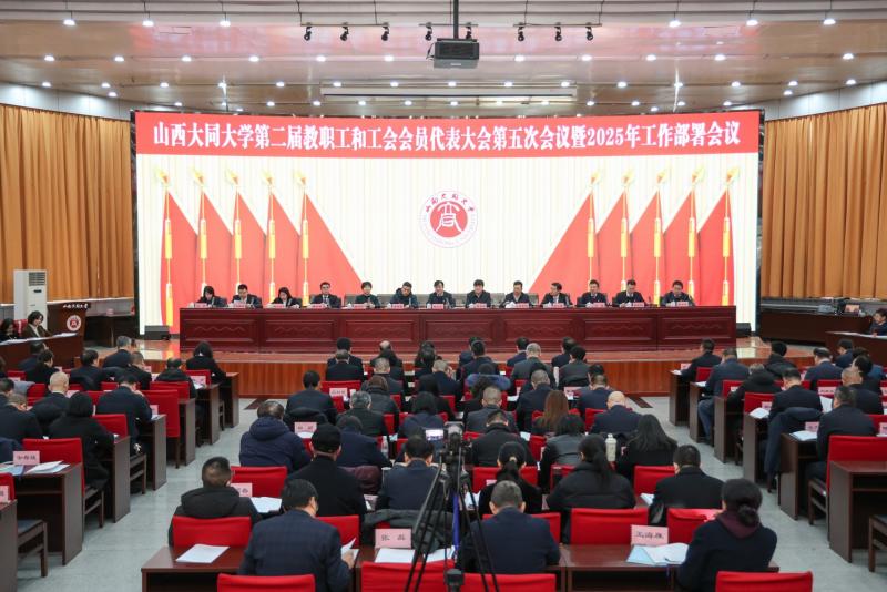 ??? 2月27日,山西大同大學(xué)第二屆教職工和工會(huì)會(huì)員代表大會(huì)第五次會(huì)議暨2025年工作部署會(huì)議在慎思樓報(bào)告廳召開。山西省總工會(huì)黨組成員、副主席、山西省教科文衛(wèi)體工會(huì)主席李忠貴出席大會(huì)并致辭,山西省教科文衛(wèi)體工會(huì)常務(wù)副主席尹玉平,山西工人報(bào)社黨委書記、社長(zhǎng)、總編輯史錄剛,以及山西工人報(bào)社全媒體編輯中心相關(guān)負(fù)責(zé)人出席。校黨委書記趙水民出席大會(huì)并講話,校黨委副書記、校長(zhǎng)姚麗英作學(xué)校工作報(bào)告。大會(huì)確定學(xué)校2025年8個(gè)民生實(shí)事項(xiàng)目。校黨委常委出席,200余名正式代表參加,民主黨派人士、離退休老同志、學(xué)生代表列席,共商學(xué)校改革大計(jì),共繪學(xué)校發(fā)展藍(lán)圖。