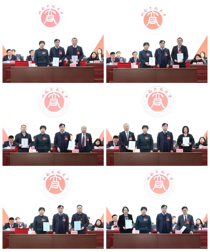 李忠貴、尹玉平、史錄剛為我校頒發(fā)2024年度山西省高校青年教師教學(xué)競(jìng)賽優(yōu)秀組織獎(jiǎng),為校工會(huì)、數(shù)學(xué)與統(tǒng)計(jì)學(xué)院工會(huì)頒發(fā)山西省教科文衛(wèi)體工會(huì)2024年“五小”創(chuàng)新大賽優(yōu)秀組織獎(jiǎng)、山西省教科文衛(wèi)體工會(huì)2024年組織建設(shè)競(jìng)賽優(yōu)勝單位獎(jiǎng)牌。與會(huì)領(lǐng)導(dǎo)為李經(jīng)緯等在山西省教科文衛(wèi)體工會(huì)2024年“五小”創(chuàng)新大賽、2024年度山西省高校青年教師教學(xué)競(jìng)賽中獲得榮譽(yù)的11名教師頒獎(jiǎng)。
