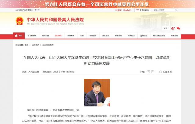 全國人大代表、山西大同大學煤基生態碳匯技術教育部工程研究中心主任趙建國:以改革創新助力綠色發展