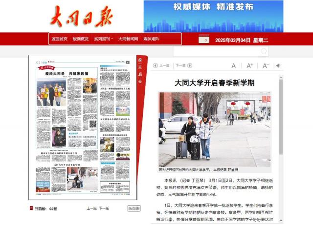 1日,大同大學迎來春季開學第一批返校學生。學生們拖著行李箱,懷揣著對新學期的期待走向宿舍樓。宿舍里,同學們相互幫忙搬運行李,熱情分享著假期見聞。來自不同學院的學子紛紛表達對新學年學習生活的愿景。新聞與傳媒學院大二學生王清泉表示:“新學期,我希望在學好專業知識的基礎上,參加更多社會實踐活動,提升綜合能力。”
