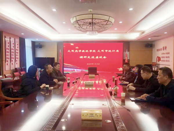 ? 數學與統計學院落實我校“大拜訪、大對接、大合作”部署,加強學院與統計機構的交流合作,促進教育與產業深度融合,3月5日下午,由院長劉有軍帶隊前往大同市統計局和國家統計局大同調查隊開展大拜訪活動。