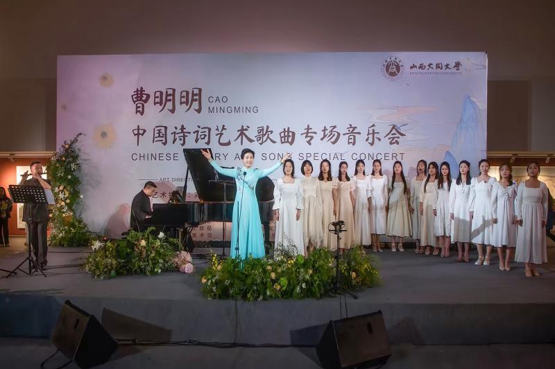 曹明明積極投身藝術實踐,推動音樂文化的傳承與創新。她負責的項目“云岡石窟詩詞民族管弦樂”獲得首屆山西省藝術基金2024年度舞臺藝術作品創作生產項目資助,資助資金50萬元。該項目深入研究云岡詩詞,將其中蘊含的意象、情感與音樂元素巧妙結合,創作出極具獨特魅力的音樂作品,大膽將民族管弦樂與詩詞藝術創新融合,填補了云岡石窟詩詞音樂創作的空白。在創作過程中,她大膽探索不同音樂風格、樂器配置與演唱技巧在詩詞譜曲中的應用,極大地豐富了詩詞傳唱的藝術表現形式,為云岡古詩詞的傳承和發展開辟了新路徑,提供了全新的思路與方向。同時,她帶領團隊對明清至今的云岡石窟詩詞展開全面梳理,深入挖掘云岡石窟所蘊含的音樂元素,并借助現代音樂技術手段進行精心創作與精彩演繹,為云岡文化的多元研究增添了濃墨重彩的一筆。