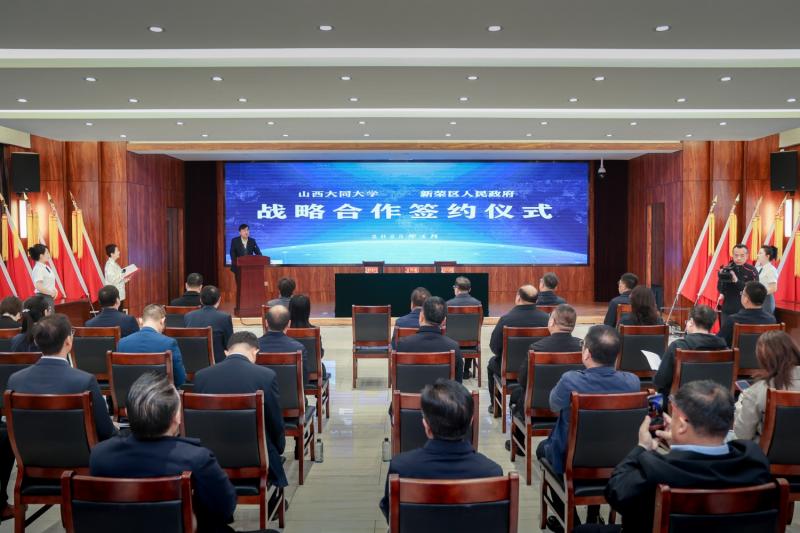 劉中文在致辭中指出,山西大同大學作為山西省首批高水平應用型本科高校,將服務大同市經濟社會發展的責任牢牢扛在肩上,并始終心系新榮區發展,在賦能產業教育合作等方面取得顯著成果。山西大同大學的優勢學科與新榮區的發展目標、產業體系高度契合,此次簽約將成為校區雙方資源共享的新起點,溝通交流的新載體,加強合作的新平臺。希望山西大同大學能進一步發揮自身優勢,以更大力度推動產教融合、科教融匯、校地融通,為新榮區經濟社會高質量發展提供更有力的人才和科技支撐。新榮區將全力做好各項服務保障,為開展校地合作提供最優環境,奮力譜寫攜手共贏嶄新篇章。