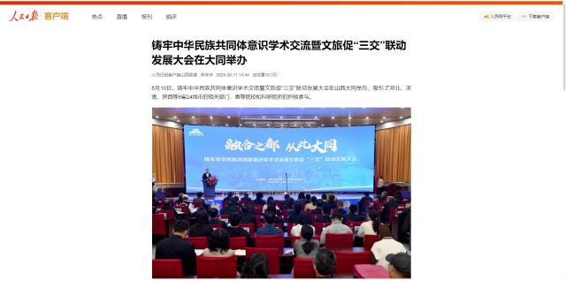 5月10日,鑄牢中華民族共同體意識學術交流暨文旅促“三交”聯動發展大會在山西大同舉辦,吸引了河北、河南、陜西等8省24地市的相關部門、高等院校和科研院所的積極參與。