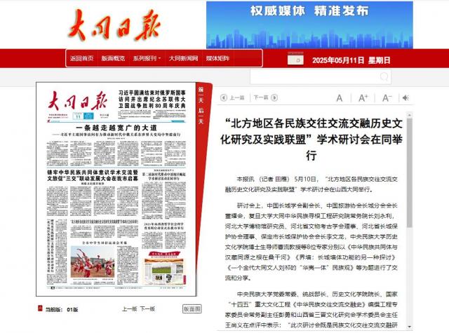本報(bào)訊(記者 田雁)5月10日,“北方地區(qū)各民族交往交流交融歷史文化研究及實(shí)踐聯(lián)盟”學(xué)術(shù)研討會在山西大同舉行。