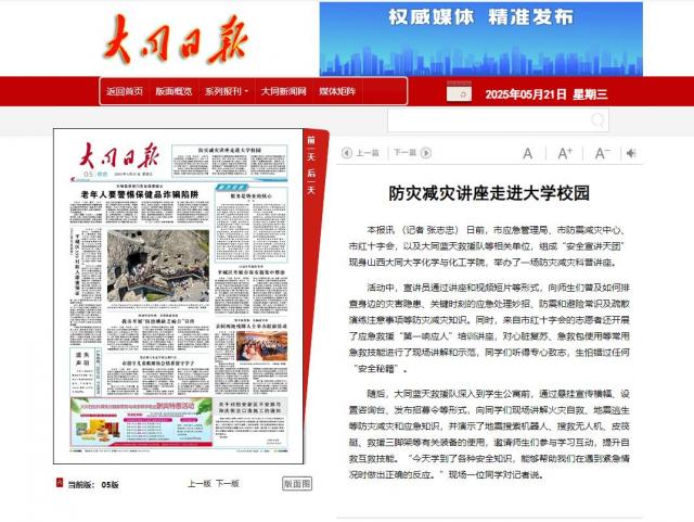 本報訊(記者 張志忠)日前,市應急管理局、市防震減災中心、市紅十字會,以及大同藍天救援隊等相關單位,組成“安全宣講天團”現身山西大同大學化學與化工學院,舉辦了一場防災減災科普講座。