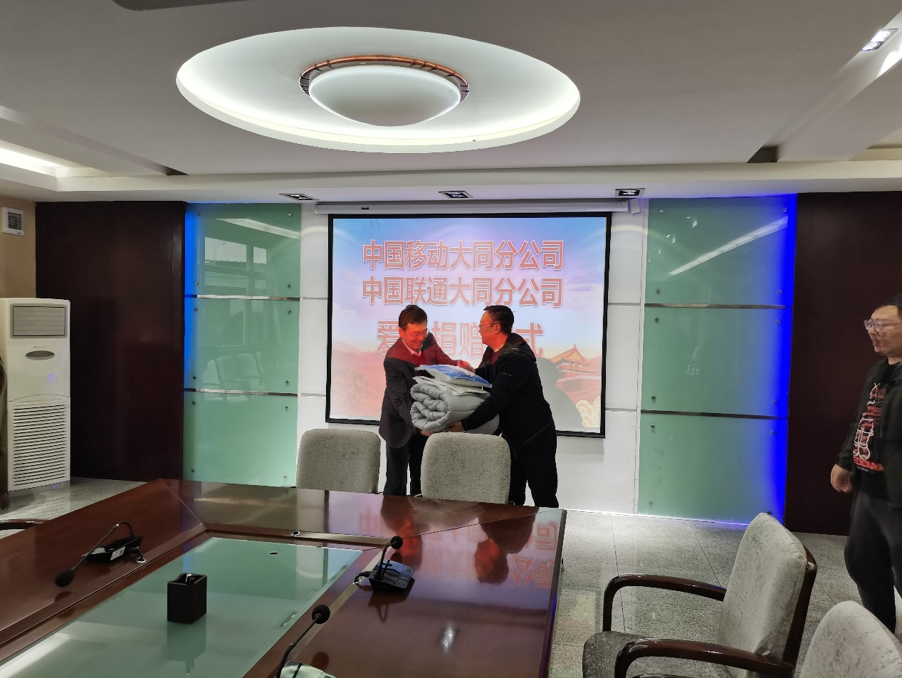 10月6日下午,中國移動通信集團大同分公司、中國聯通有限公司大同分公司向我校家庭經濟困難學生捐贈生活用品儀式在行知樓14層會議室舉行。此次捐贈由校計算機網絡中心組織發起,中國移動大同分公司捐贈生活用品(床上用品七件套)70套,中國聯通大同分公司捐贈生活用品(床上用品六件套)50套。