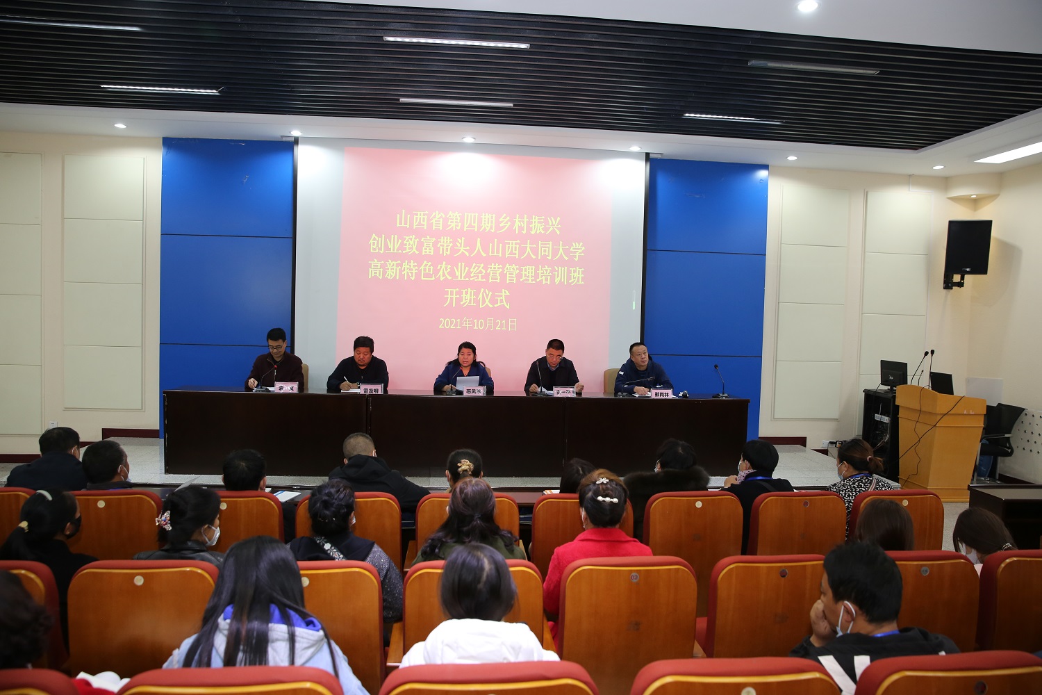 10月21日上午,根據(jù)《山西省鄉(xiāng)村振興局關(guān)于舉辦全省第四期鄉(xiāng)村振興致富帶頭人示范培訓(xùn)班的通知》文件精神,山西省第四期鄉(xiāng)村振興致富帶頭人山西大同大學(xué)“高新特色農(nóng)業(yè)經(jīng)營(yíng)管理示范培訓(xùn)班”開(kāi)班儀式在我校善美樓六層會(huì)議室舉行。校黨委常委、副校長(zhǎng)石鳳珍,大同市扶貧開(kāi)發(fā)中心主任安一平,山西省鄉(xiāng)村振興基地評(píng)估專(zhuān)家、朔州市鄉(xiāng)村振興局副局長(zhǎng)雷發(fā)明,繼續(xù)教育學(xué)院副院長(zhǎng)邢同林,繼續(xù)教育學(xué)院的相關(guān)人員以及來(lái)自大同市所轄各區(qū)縣的117名培訓(xùn)學(xué)員參加了會(huì)議。