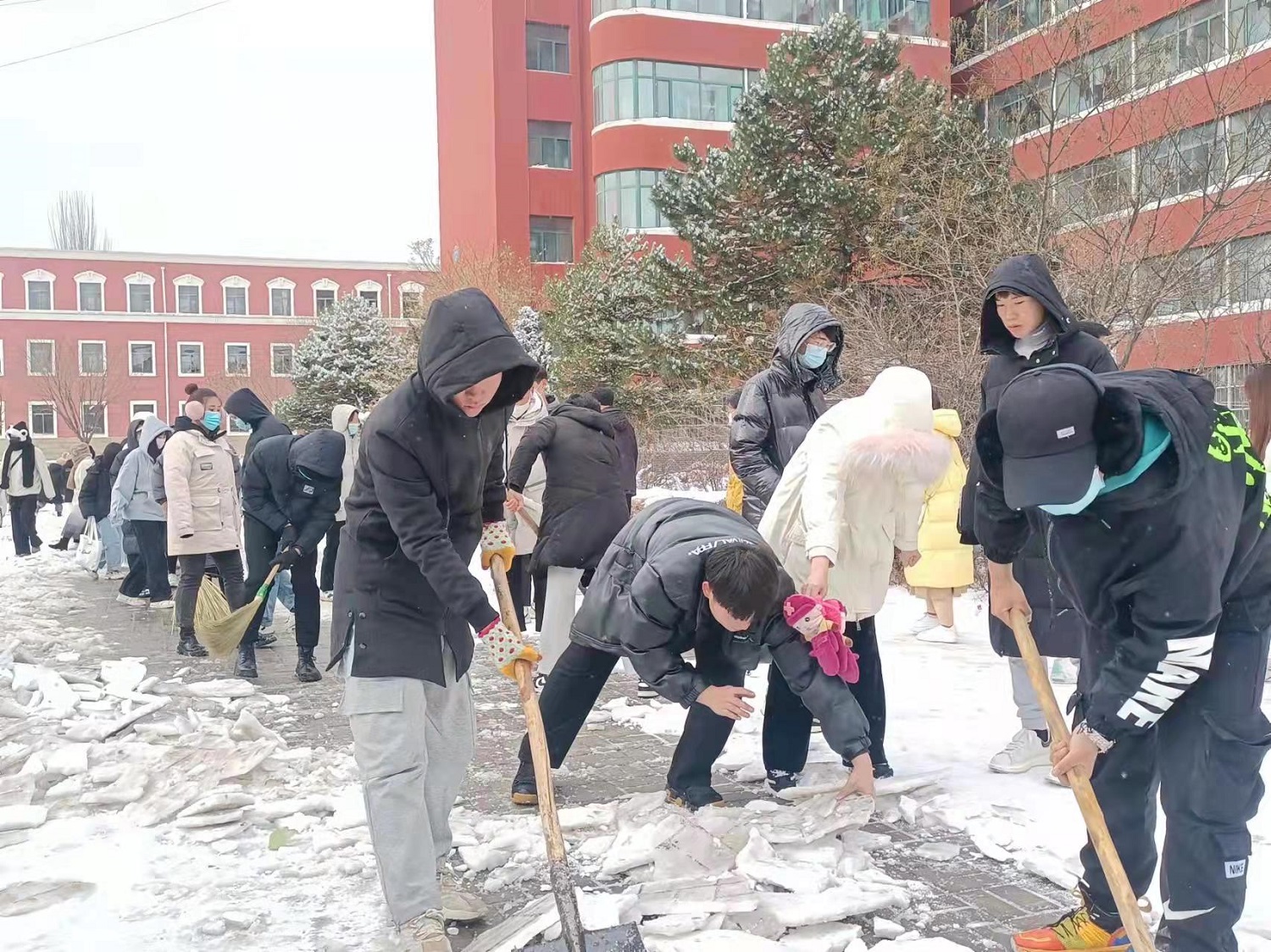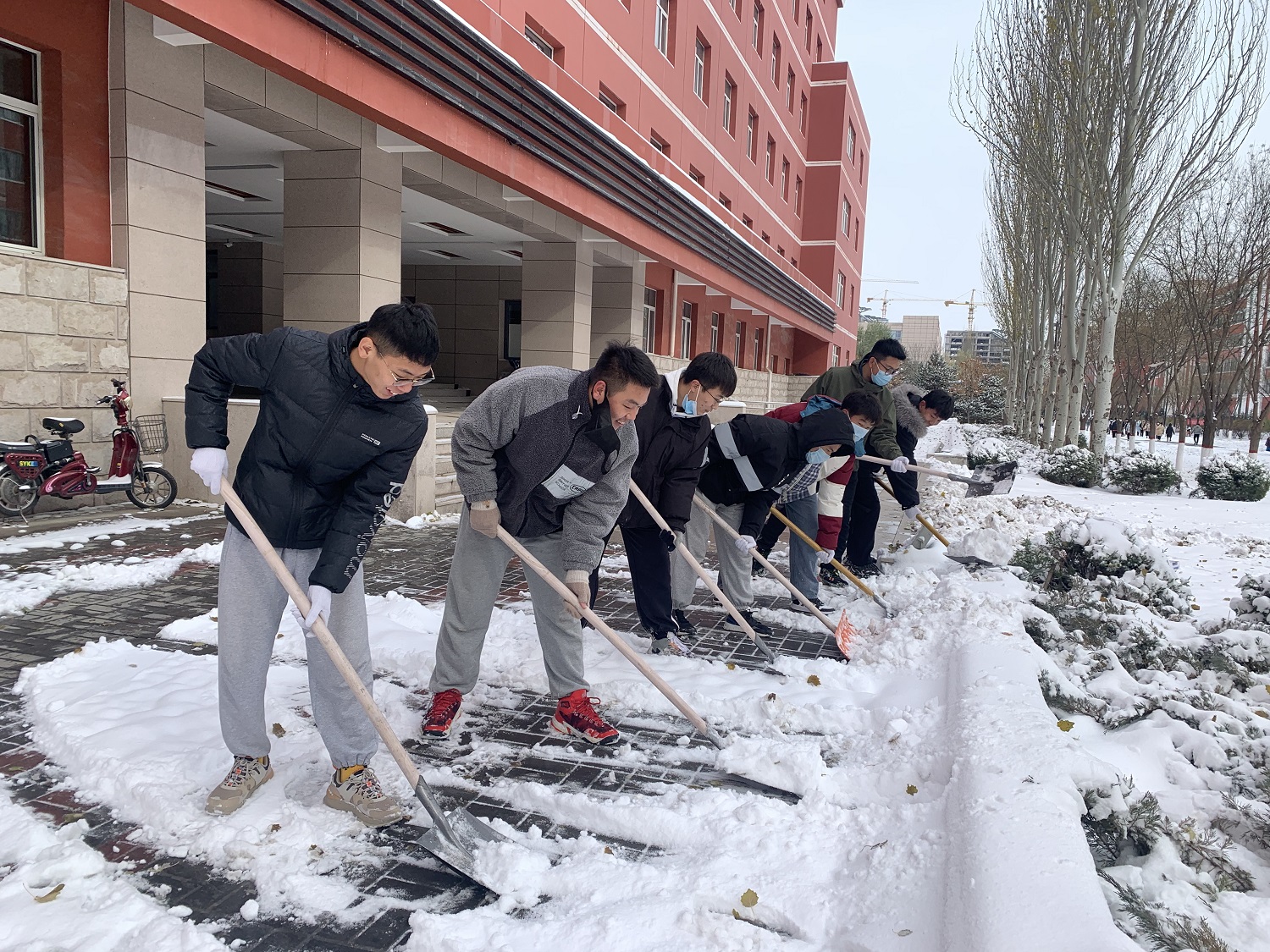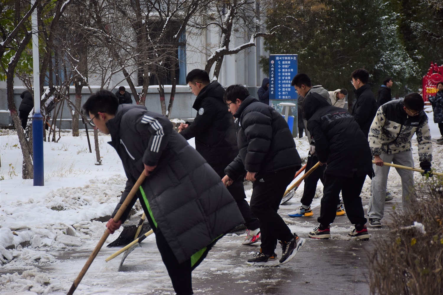 然而,這場突如其來的大雪在帶給我們歡樂的同時,也給廣大師生的出行帶來諸多不便。為盡快掃雪除冰、暢通道路、消除安全隱患,確保師生在校安全和教育教學正常運行,學校愛國衛生運動委員會迅速反應,對校園積雪清掃工作作出全面部署。按照《學院衛生責任片區》劃分的責任區,兩校區各學院、部門指定專人負責,積極組織師生快速行動,積極投入積雪清掃行動。