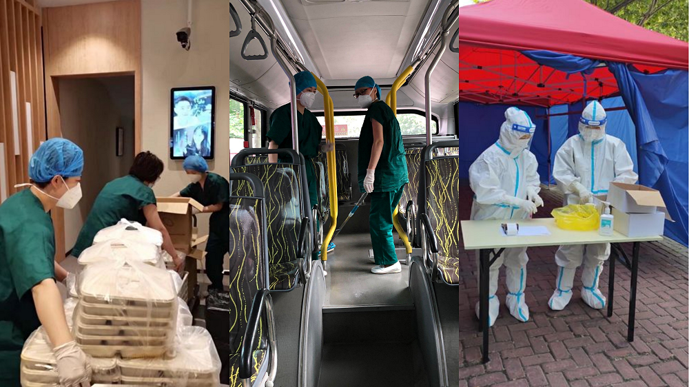 下班休息時間,醫療隊員主動參與到后勤保障工作中,為駐地醫務人員進行分發餐食、消殺及核酸采集工作。
