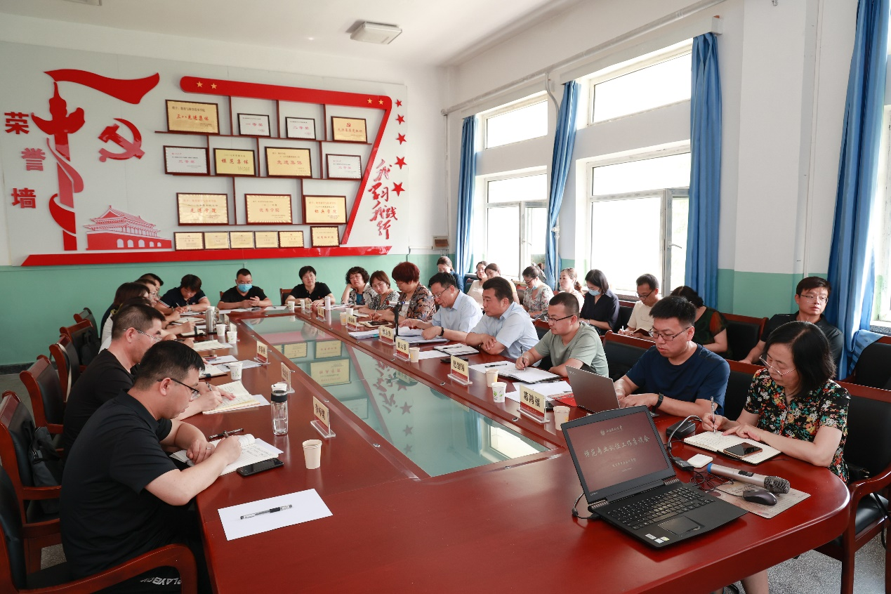 ? 6月20日下午,我校在明理樓525會議室召開師范專業(yè)認證工作座談會,特邀我校特聘專家顧永安教授為我校師范專業(yè)認證申請書和自評報告撰寫做指導。校黨委常委、副校長翟大彤出席會議,各師范類學院院長及申請書、自評報告撰寫人,教學質(zhì)量監(jiān)控與督導中心全體人員參加會議。會議由教育科學與技術(shù)學院院長李春燕主持。