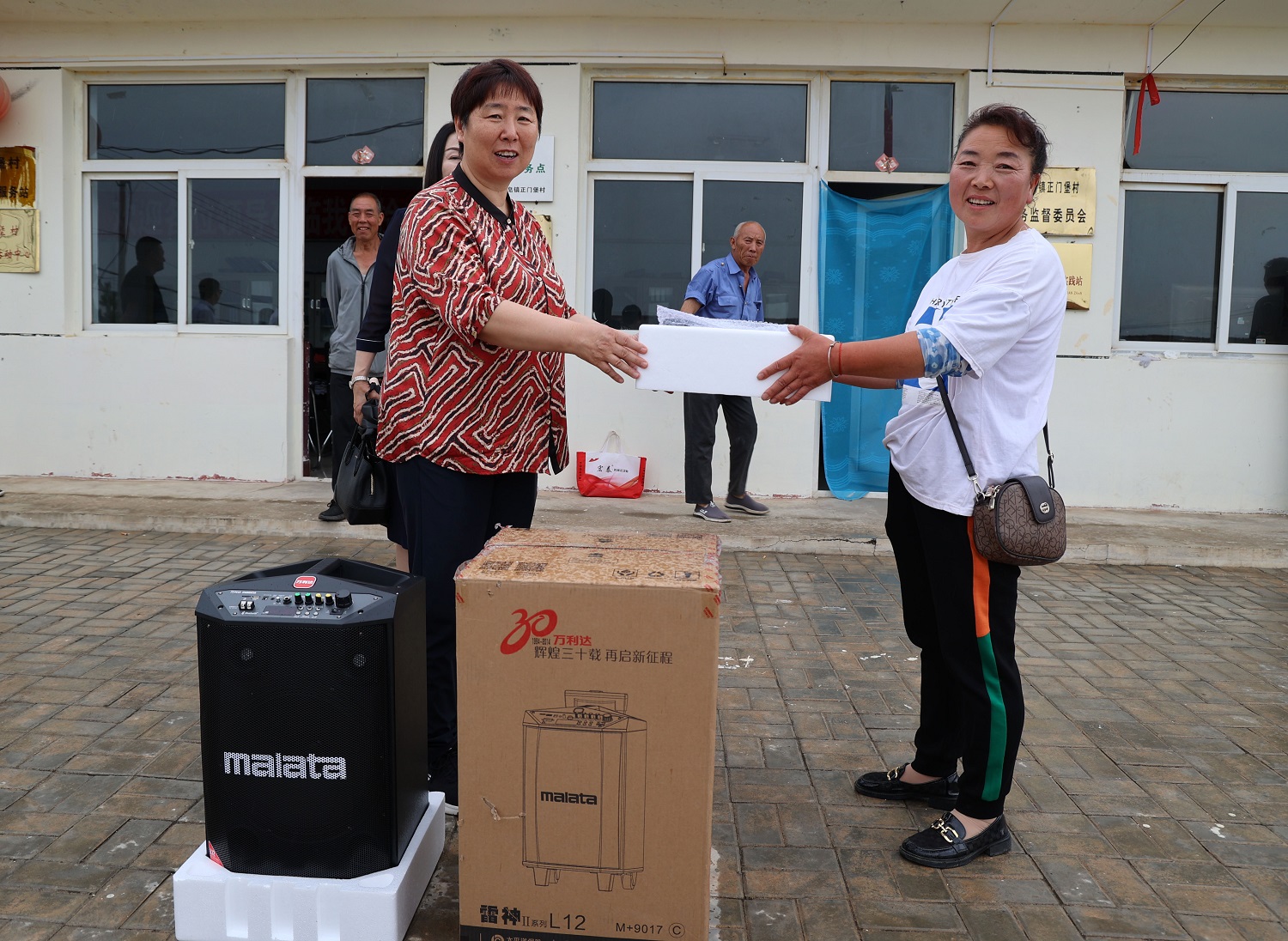 姚麗英一行首先來到鎮門堡村,在村級組織活動場所,姚麗英代表學校為村民捐贈了音響設備,希望以此豐富村民的娛樂文化生活。隨后,領導們冒雨走訪了鎮門堡村、七墩村的幫扶對象,為他們送上慰問品。“收入如何、身體怎么樣、對我們的幫扶工作有什么建議……”姚麗英與村民們親切交談,事無巨細地詢問他們的生活情況,表示學校會進一步加大幫扶力度,帶動村民增收致富,共同創造更加美好的生活。村民們歷數著大同大學的各種幫扶政策,對學校的幫扶工作給予高度贊揚,對黨和政府以及大同大學的感激之情、對未來美好生活的憧憬之情溢于言表。