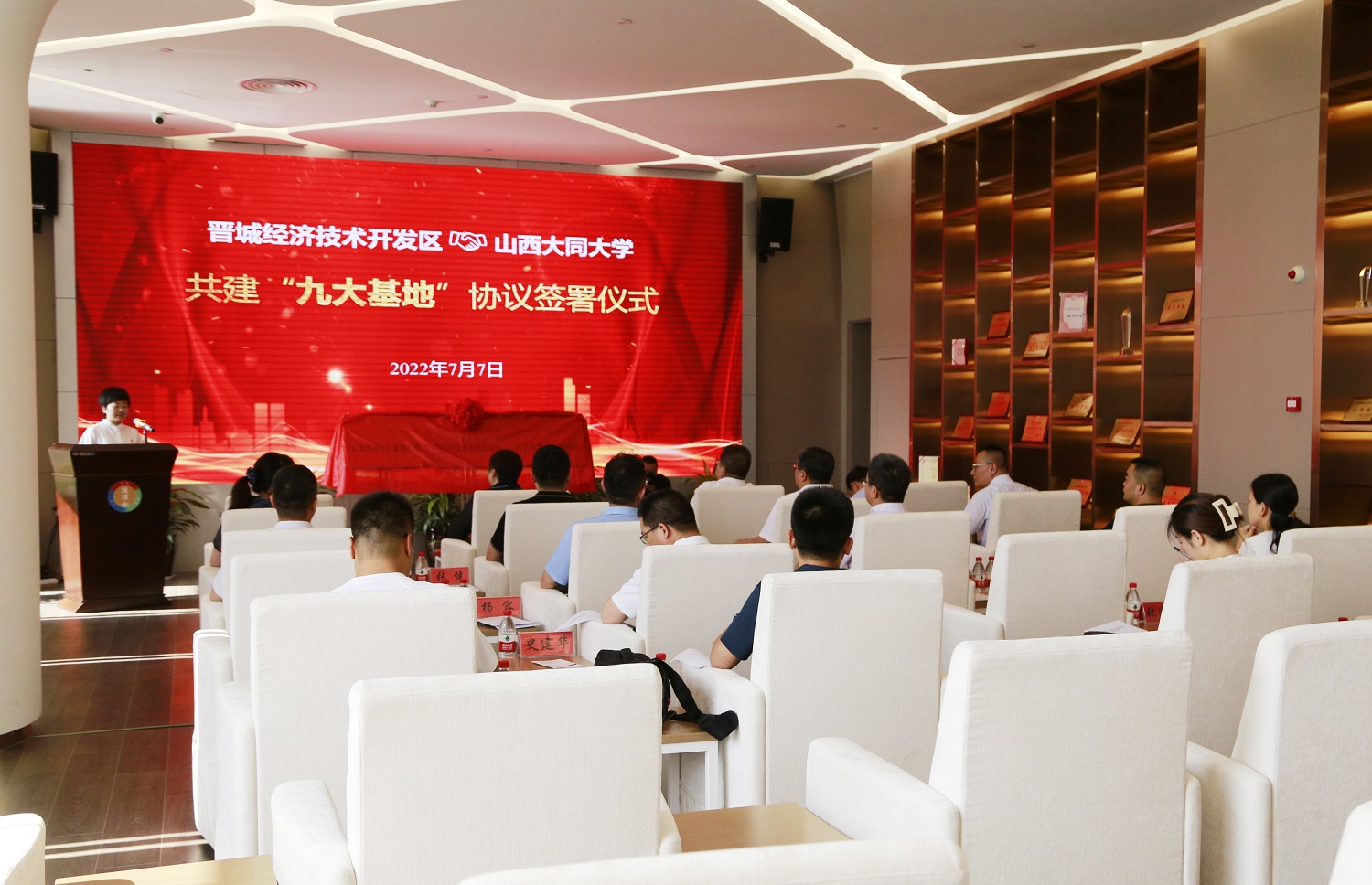 季夏六月,時暑赫晞;校區(qū)聯(lián)手,共結(jié)華實。7月7日,山西大同大學與晉城經(jīng)濟技術(shù)開發(fā)區(qū)合作共建“九大基地”協(xié)議簽署暨揭牌儀式在山西晉城智創(chuàng)城隆重舉行。這是雙方貫徹落實習近平總書記視察山西重要講話重要指示精神的重大舉措,是雙方落實省第十二次黨代會精神的具體行動,是雙方高度重視人才戰(zhàn)略和科技創(chuàng)新的具體體現(xiàn),是山西大同大學堅持“轉(zhuǎn)型發(fā)展、內(nèi)涵發(fā)展、特色發(fā)展、質(zhì)量立?!薄⑴ㄔO(shè)高水平應用型綜合大學的生動實踐。