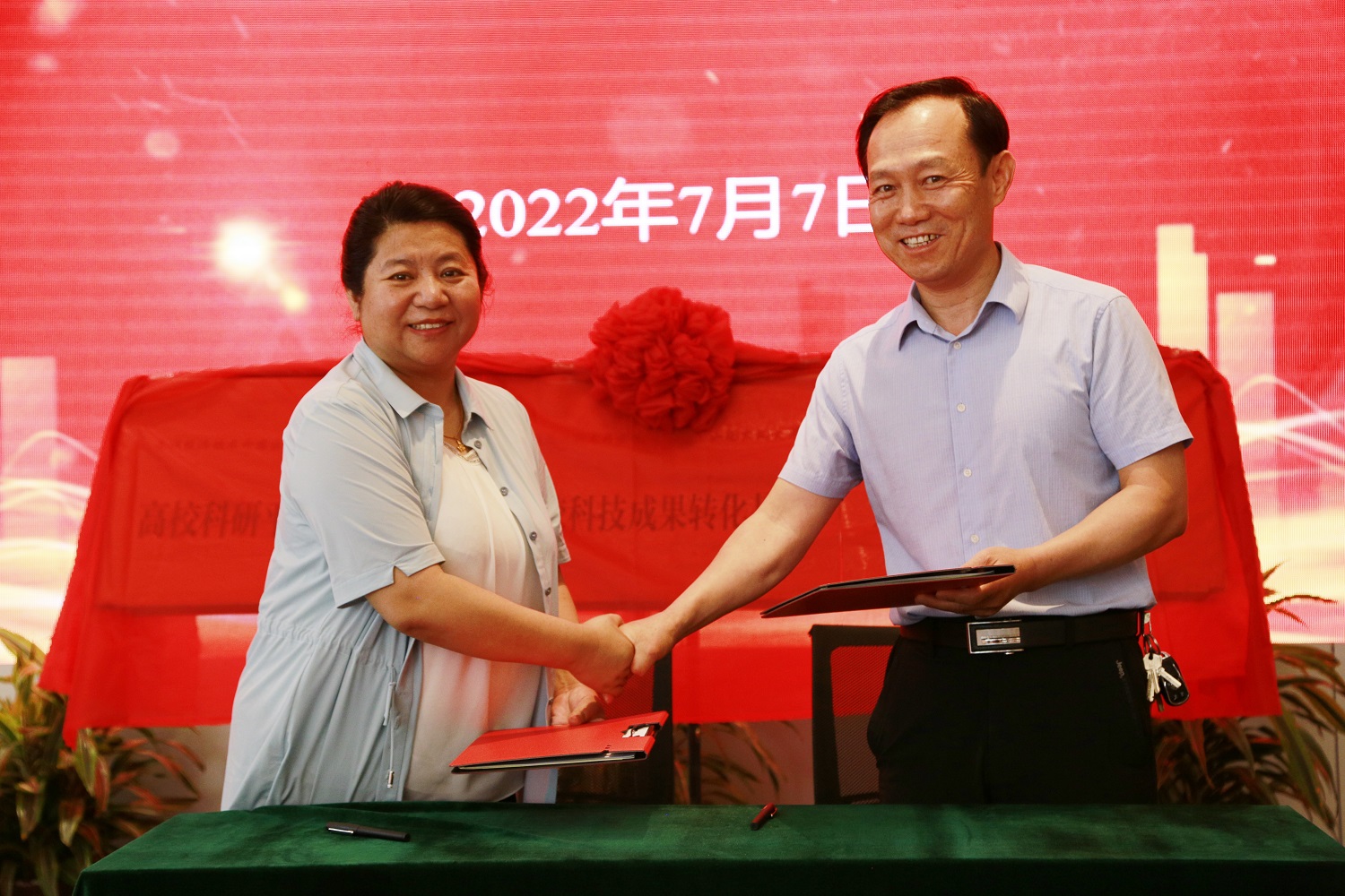 姚麗英、史小林共同為“高校科研平臺延伸基地”“高校科技成果轉(zhuǎn)化基地”“大學生實習實訓基地”揭牌。