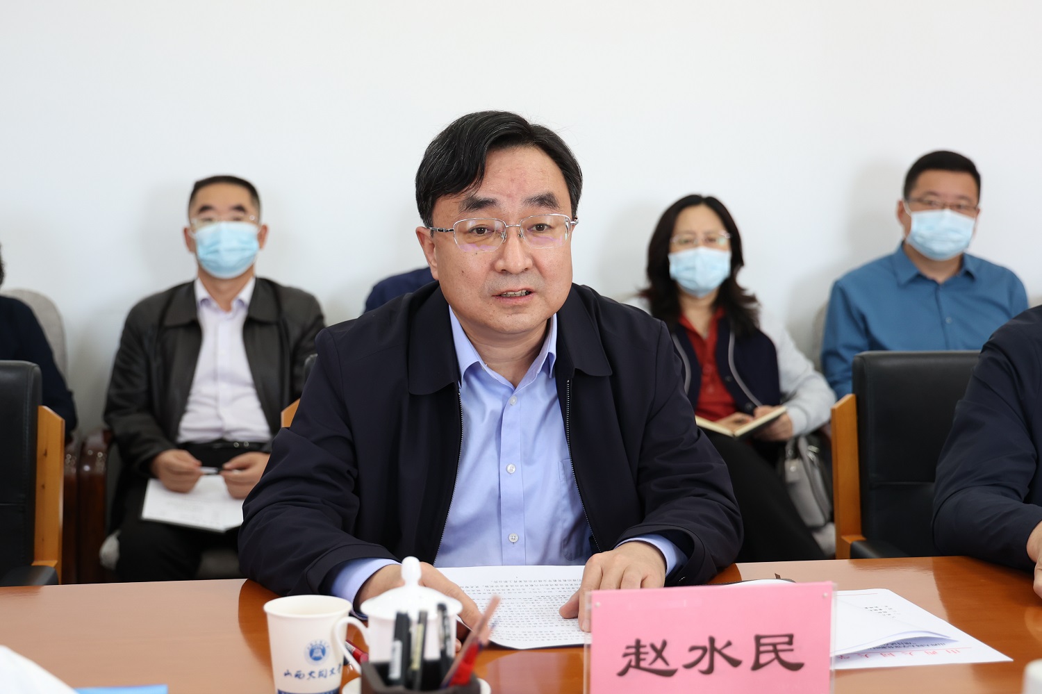 趙水民對(duì)評(píng)估組一行表示歡迎,介紹了學(xué)校基本情況,并表示,深化新時(shí)代教育評(píng)價(jià)改革是深入貫徹落實(shí)習(xí)近平總書記關(guān)于教育的重要論述和全國教育大會(huì)精神的重要舉措,是推動(dòng)高等教育高質(zhì)量發(fā)展的必然要求。山西大同大學(xué)高度重視深化新時(shí)代教育評(píng)價(jià)改革工作,在申報(bào)了省試點(diǎn)項(xiàng)目后,學(xué)校不斷強(qiáng)化頂層設(shè)計(jì),細(xì)化工作舉措,全面實(shí)施改革試點(diǎn)方案,形成了具有同大特色的教育教學(xué)業(yè)績評(píng)價(jià)體系,在學(xué)校高水平應(yīng)用型大學(xué)的建設(shè)進(jìn)程中發(fā)揮了重要支撐作用。對(duì)“項(xiàng)目試點(diǎn)”建設(shè)情況進(jìn)行評(píng)估,有利于充分發(fā)揮教育評(píng)價(jià)的“指揮棒”作用,提升高等教育改革效能。相信通過此次評(píng)估和各位專家的把脈會(huì)診,學(xué)校“項(xiàng)目試點(diǎn)”建設(shè)工作一定會(huì)再上新臺(tái)階。