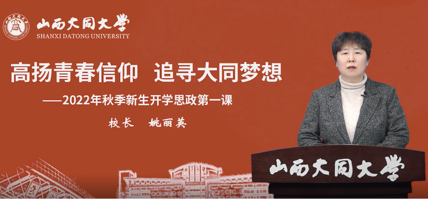 ?? 10月13日,校黨委副書記、校長姚麗英以《高揚青春信仰,追尋大同夢想》為題,圍繞“時代、精神、希望”三個關鍵詞,為2022級新生講授“開學思政第一課”。8000余名本科及研究生新生以宿舍為單位,通過觀看視頻錄播的形式共同聆聽,在姚麗英校長的帶領下進行了一場深刻的思想之旅。