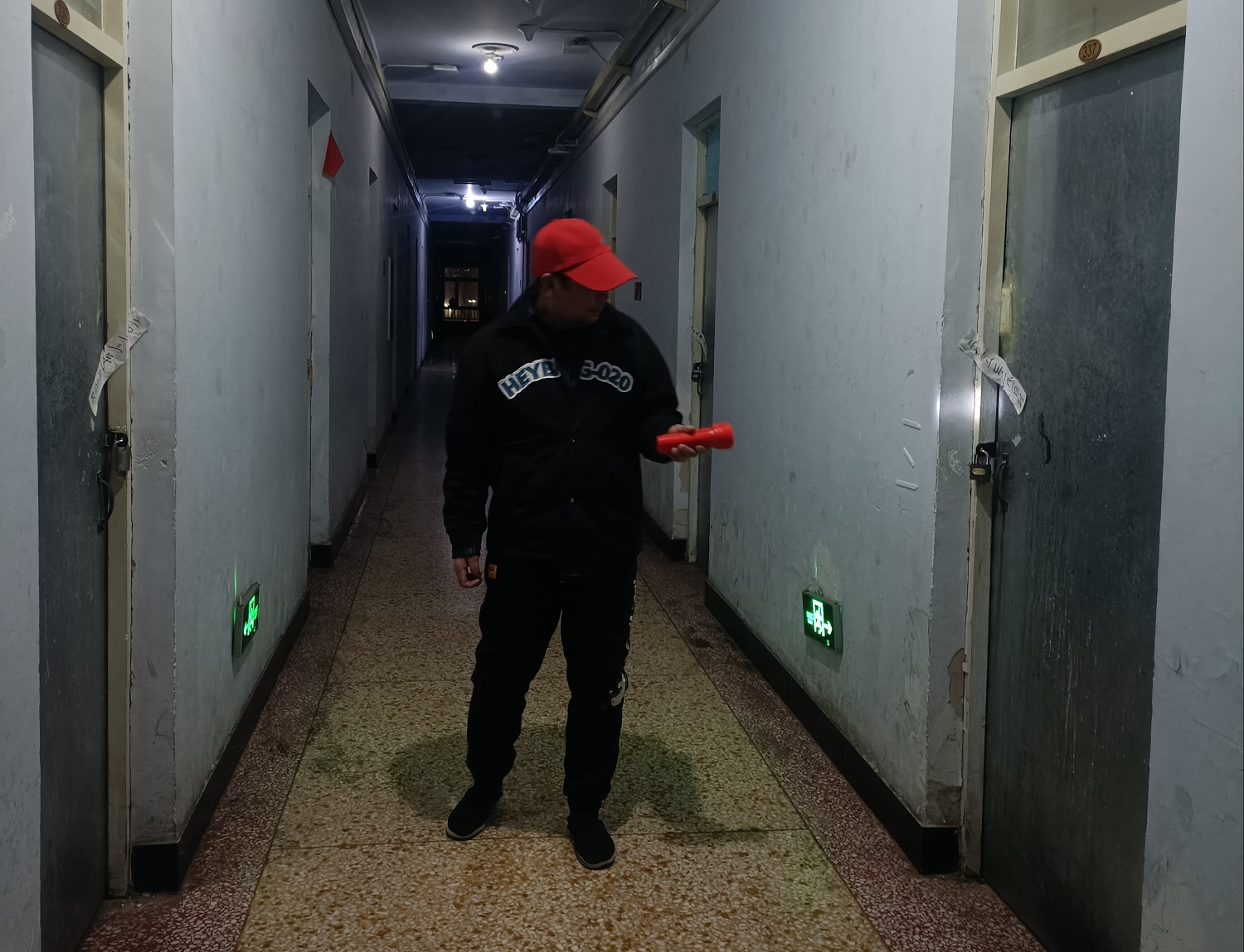 寒假期間的校園安全用水、用電、取暖至關重要,為消除隱患,杜絕安全事故的發生,后勤管理部通盤考慮、充分動員,安排公寓中心及物業人員全天候值班,確保排查“無死角”,安全“零盲區”?!霸诎才胖蛋嗟倪^程中,整個公寓中心的教職工沒有任何的推諉和搪塞,特別是有好幾個人都主動提出愿意在春節期間值班,這讓我很是感動?!惫⒅行闹魅沃苡儡娬f到。“我們的值班人員每天都會對全校所有的學生公寓進行‘地毯式’的巡視,密切關注水電暖的安全,同時積極配合公寓中心做好防火、防盜、防事故等工作?!鄙次飿I大同大學項目部副經理薛梅桃表示?!按汗澠陂g的用電安全,對于我們來說就是頭等大事,我會盡最大努力,讓同大的節日燈火更璀璨更安全?!焙笄诠芾聿烤S修工人程千說到。