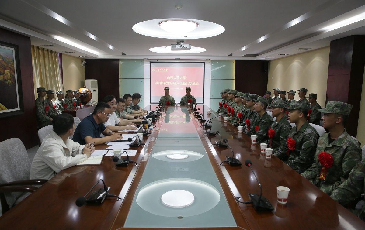 在校大學生參軍入伍,是全國征兵工作重要組成部分,是一項政策性強、涉及面廣、時間緊、要求高的政治任務,也是國防和軍隊建設的一項重要的基礎工程。學校高度重視大學生征兵入伍工作,9月15日下午,我校2023年秋季新兵入伍歡送會在行知樓十四層會議室召開。校黨委書記趙水民、大同軍分區領導吳重清出席歡送會。大同市征兵辦、學校相關部門負責人、2023年秋季應征入伍全體同學參加歡送會,黨委學生工作部部長楊容主持會議。
