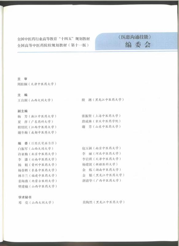 《醫(yī)患溝通技能》是全國中醫(yī)藥行業(yè)高等教育“十四五”規(guī)劃教材,也是全國高等中醫(yī)藥院校規(guī)劃教材。這是由我校教師作為主編和參編的中醫(yī)藥行業(yè)最權威的教材,也是學院教學成果的體現(xiàn)。(中醫(yī)藥健康服務學院)