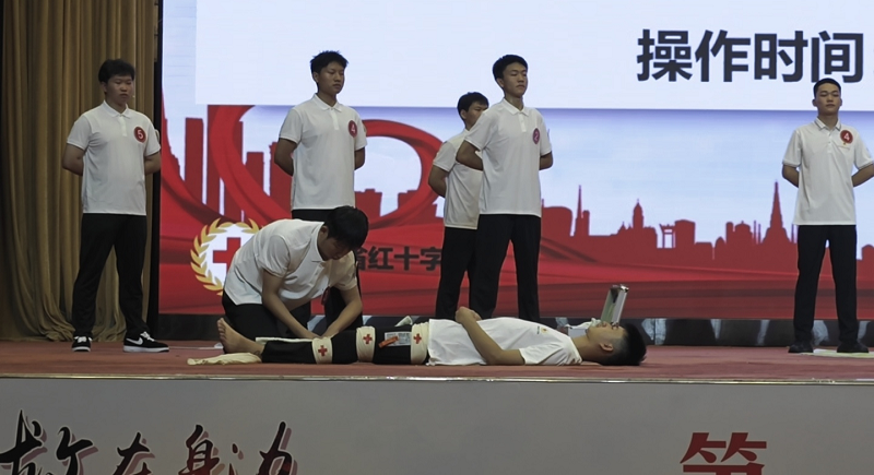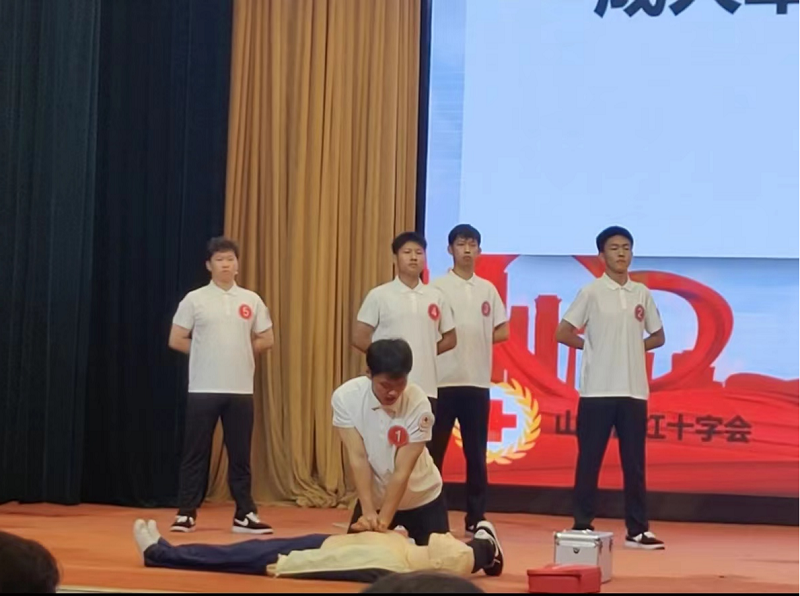 此次大賽由我校組隊代表大同市參賽,他們的口號是“關愛生命,救在大同,鄰里守望,天下大同。”大同市紅十字會秘書長王亮擔任領隊,校紅十字會秘書長張麗萍擔任教練,醫學院7位學生參賽。