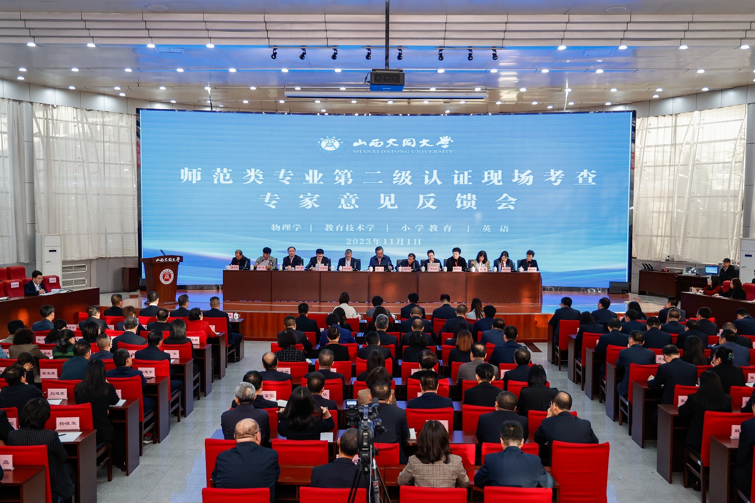 10月30日上午,專(zhuān)家見(jiàn)面會(huì)在慎思樓報(bào)告廳舉行。聯(lián)合認(rèn)證專(zhuān)家組組長(zhǎng)、小學(xué)教育專(zhuān)業(yè)專(zhuān)家組組長(zhǎng)、江蘇師范大學(xué)原副校長(zhǎng)錢(qián)進(jìn),英語(yǔ)專(zhuān)業(yè)專(zhuān)家組組長(zhǎng)、西南大學(xué)國(guó)際學(xué)院院長(zhǎng)劉承宇,教育技術(shù)學(xué)專(zhuān)業(yè)專(zhuān)家組組長(zhǎng)、東北師范大學(xué)教務(wù)處副處長(zhǎng)趙長(zhǎng)明,物理學(xué)專(zhuān)業(yè)專(zhuān)家組組長(zhǎng)、云南師范大學(xué)評(píng)估中心原主任、本科教學(xué)督導(dǎo)團(tuán)團(tuán)長(zhǎng)畢先均等16位專(zhuān)家,山西省委教育工作委員會(huì)主持日常工作的副書(shū)記(正廳長(zhǎng)級(jí))、省教育廳黨組成員楊軍,山西省教育廳教師工作處副處長(zhǎng)李鵬,山西教育雜志社主編王剛,大同市政府副秘書(shū)長(zhǎng)曹暉,大同市委教育工作委員會(huì)委員、市教育局黨組成員、總督學(xué)李文麗,全體校領(lǐng)導(dǎo)出席會(huì)議。相關(guān)職能部門(mén)負(fù)責(zé)人、認(rèn)證專(zhuān)業(yè)所在學(xué)院班子全體成員及專(zhuān)業(yè)負(fù)責(zé)人、其他師范類(lèi)專(zhuān)業(yè)所在學(xué)院黨政負(fù)責(zé)人參加會(huì)議。