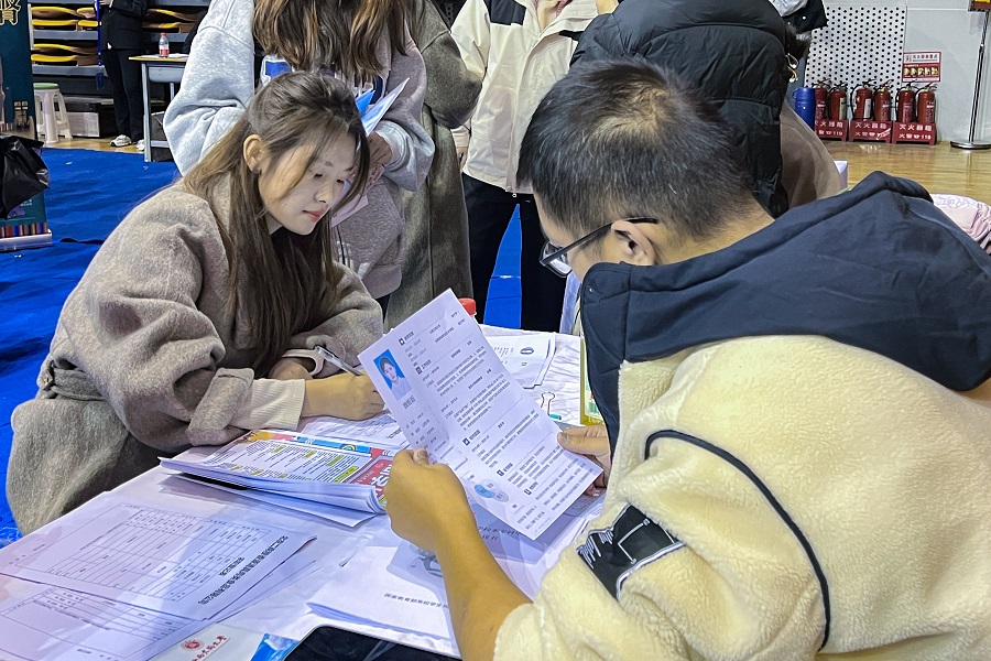 近6000名畢業(yè)生前來(lái)參加雙選會(huì)。同學(xué)們帶著精心準(zhǔn)備的簡(jiǎn)歷穿梭在不同展區(qū),或凝神閱讀企業(yè)介紹,或積極與招聘人員熱切交流,詳細(xì)了解企業(yè)崗位要求和職業(yè)發(fā)展前景,認(rèn)真尋找著心儀的崗位。同學(xué)們除了關(guān)注入職薪資福利外,更加關(guān)注自身及行業(yè)未來(lái)的發(fā)展前景。此外,現(xiàn)場(chǎng)還有不少大二、大三學(xué)子也興沖沖前來(lái)體驗(yàn)。他們表示,提前感受職場(chǎng)氛圍,尋找職業(yè)目標(biāo),與招聘工作人員溝通交流,都是鍛煉和提高自己的好機(jī)會(huì),同時(shí)也助于對(duì)自己的職業(yè)生涯作出更加科學(xué)的規(guī)劃。各學(xué)院領(lǐng)導(dǎo)、系部主任、輔導(dǎo)員及任課教師等也來(lái)到現(xiàn)場(chǎng),就人才培養(yǎng)、校企合作等與用人單位進(jìn)行了深入交流。