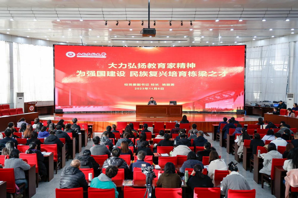 ? 11月6日下午,在慎思樓報告廳,校黨委副書記、校長姚麗英圍繞“我們是誰”“我們在哪里”“我們要到哪里去”三個話題娓娓道來,鼓勵200余名新教師大力弘揚教育家精神,為強國建設、民族復興培育棟梁之材。
