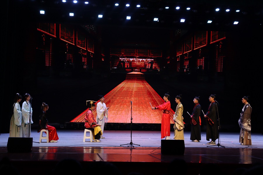 50余支隊伍提交作品,經過大賽初賽和復賽選拔,8支隊伍進入決賽。校青年志愿者協會宣講團作開幕演講,訴說青年一代對華夏文明的熱愛與崇敬。決賽中,選手們以舞臺劇的形式進行現場演繹。青春在于奮斗隊將石塔擬人化,帶我們重走北魏九層千佛石塔曲折的回家之路;星夜聚夢隊從北魏漢化這一歷史事件入手,講述司馬金龍墓漆畫屏風的前世今生;時光見證者隊則穿梭回北魏時期,見證北魏藍半球形玻璃小瓶的制造技術從中亞傳平城并廣受喜愛……一場又一場的精彩表演將我們的思緒帶回千百年前,讓我們再次聽到文物的聲音。